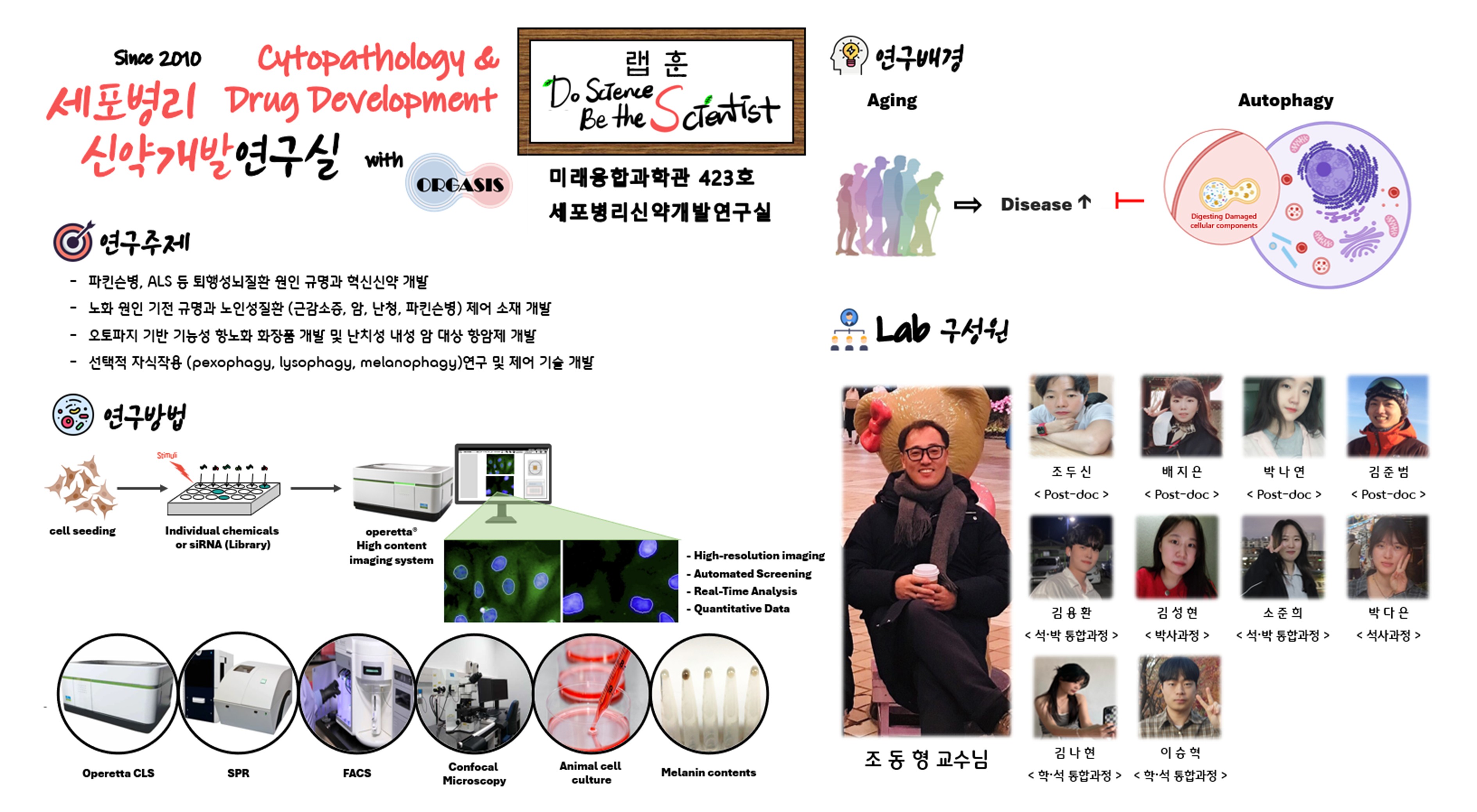 × 조동형 교수 Cho, Dong-Hyung 전공 세포노화생물학 최종학력 이학박사, GIST 연구실미래융합과학관 422호 연락처053-950-5382 이메일dhcho@knu.ac.kr 담당 교과목 생명과학1,2 연구분야 노화생물학 세포생물학 첨단신약 목록 이전글류홍열 24.06.16 다음글김경진 24.06.18